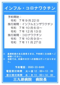 • 令和7年度 インフルコロナワクチン予約について